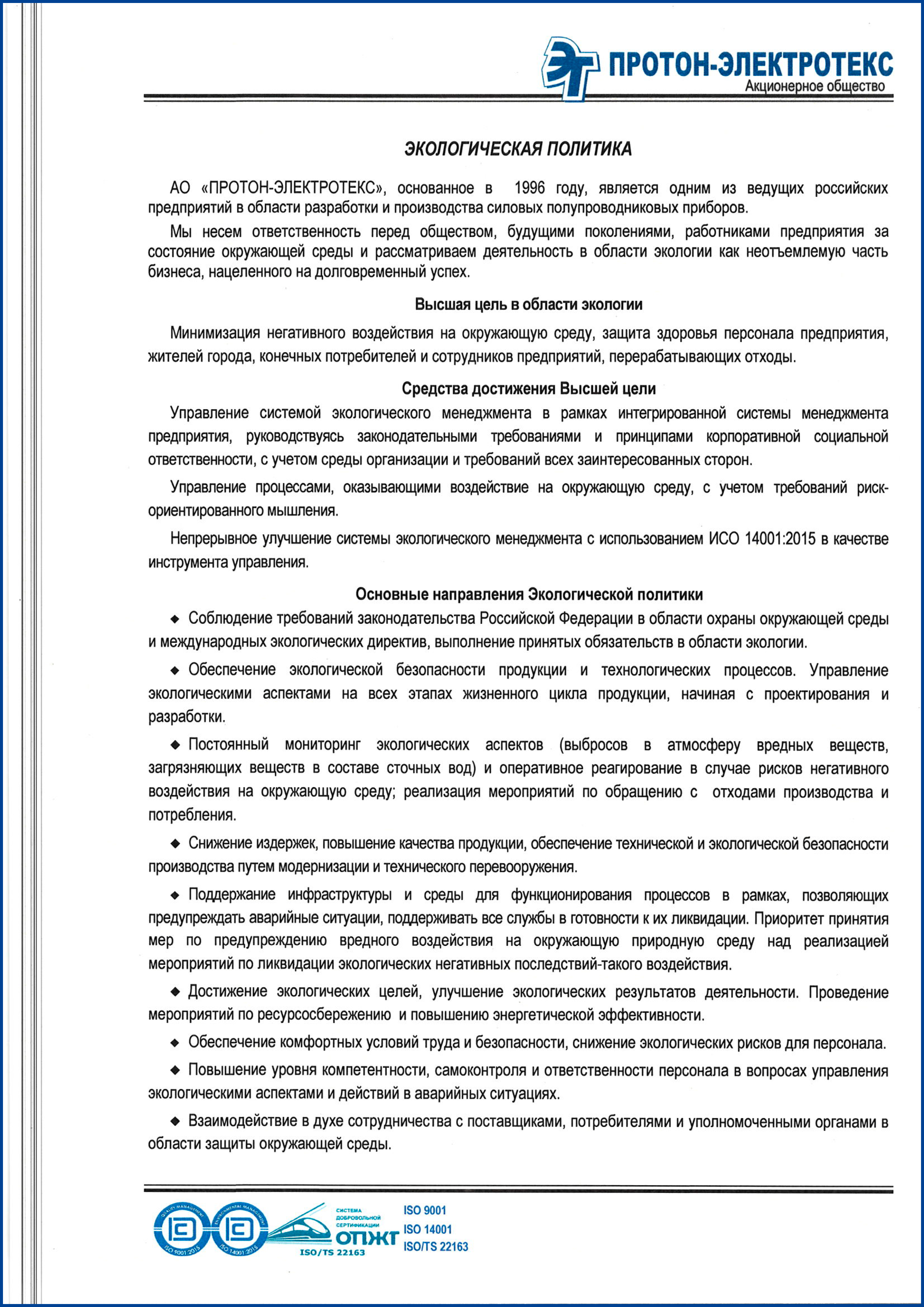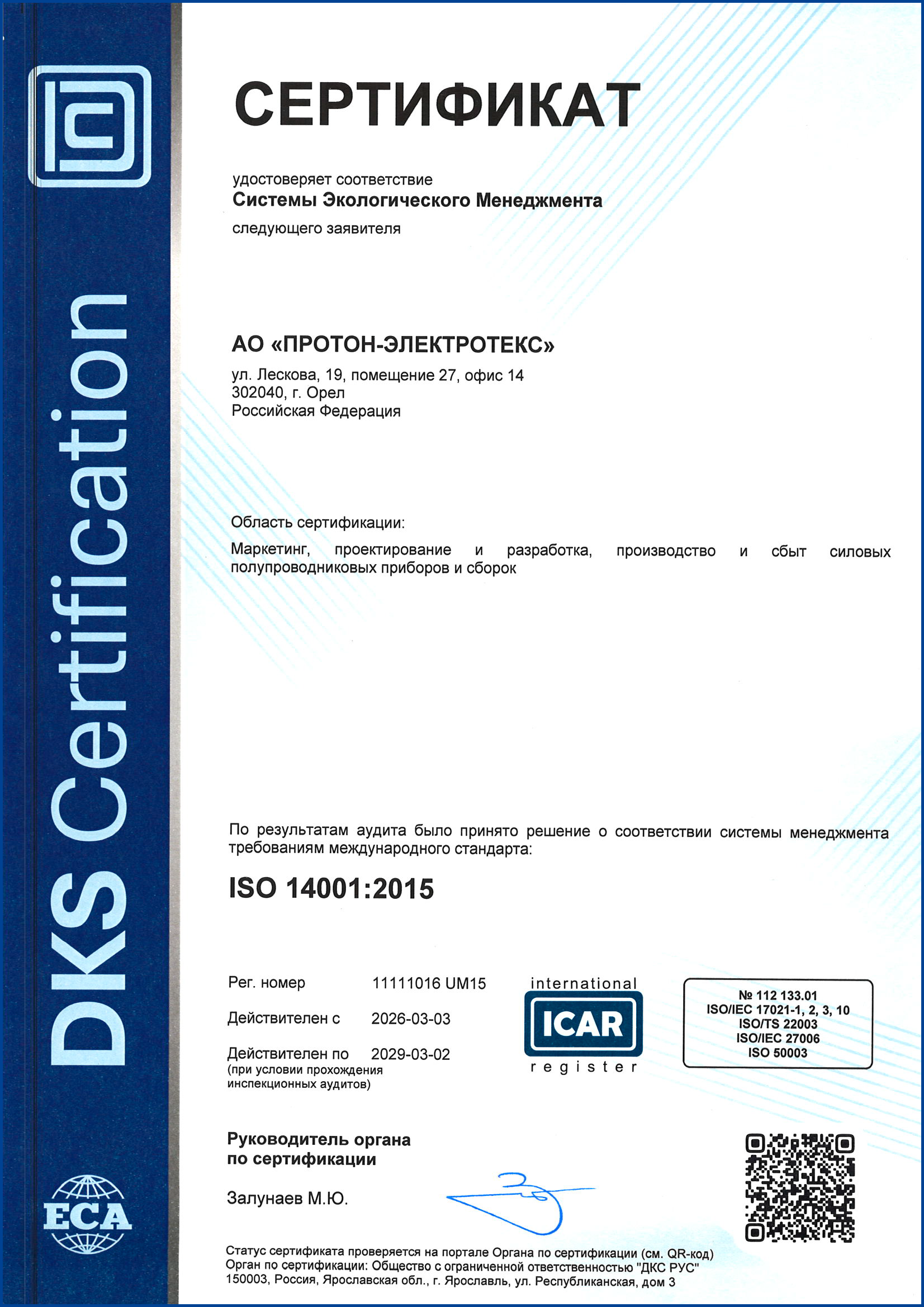 Сертификат ISO 14001