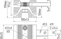 | Перепад давления [Па]:20 | Тепловое сопротивление Скорость воздуха 6 м/с [°С/Вт]:0,212 | Тепловое сопротивление (мощность рассеивания) естественное охлаждение [°С/Вт (Вт)]:0,710 (120) | Габаритные размеры без токовода (ширина/длина/ высота) [мм]:126x100x122 | Диаметр резьбового отверстия (контактной площадки) [мм]:(22) | Масса (без токовода) [кг]:1,58 (1,45) | |