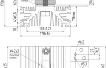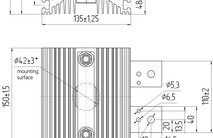 | Перепад давления [Па]:30 | Тепловое сопротивление Скорость воздуха 6 м/с [°С/Вт]:0,125 | Тепловое сопротивление (мощность рассеивания) естественное охлаждение [°С/Вт (Вт)]:0,500 (120) | Габаритные размеры без токовода (ширина/длина/ высота) [мм]:135x150x125 | Диаметр резьбового отверстия (контактной площадки) [мм]:(42) | Масса (без токовода) [кг]:3,18 (2,85) | |