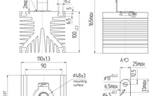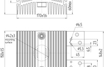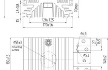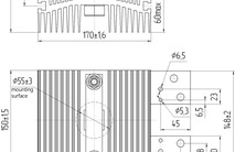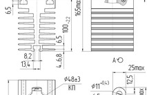 | Перепад давления [Па]:30 | Тепловое сопротивление Скорость воздуха 6 м/с [°С/Вт]:0,100 | Тепловое сопротивление (мощность рассеивания) естественное охлаждение [°С/Вт (Вт)]:0,355 (220) | Габаритные размеры без токовода (ширина/длина/ высота) [мм]:170х150х156 | Диаметр резьбового отверстия (контактной площадки) [мм]:(55) | Масса (без токовода) [кг]:5,27 (4,47) | |