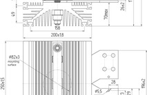 | Перепад давления [Па]:40 | Тепловое сопротивление Скорость воздуха 6 м/с [°С/Вт]:0,050 | Тепловое сопротивление (мощность рассеивания) естественное охлаждение [°С/Вт (Вт)]:0,180 (400) | Габаритные размеры без токовода (ширина/длина/ высота) [мм]:200x250x210 | Диаметр резьбового отверстия (контактной площадки) [мм]:(82) | Масса (без токовода) [кг]:12,18 (10,57) | |