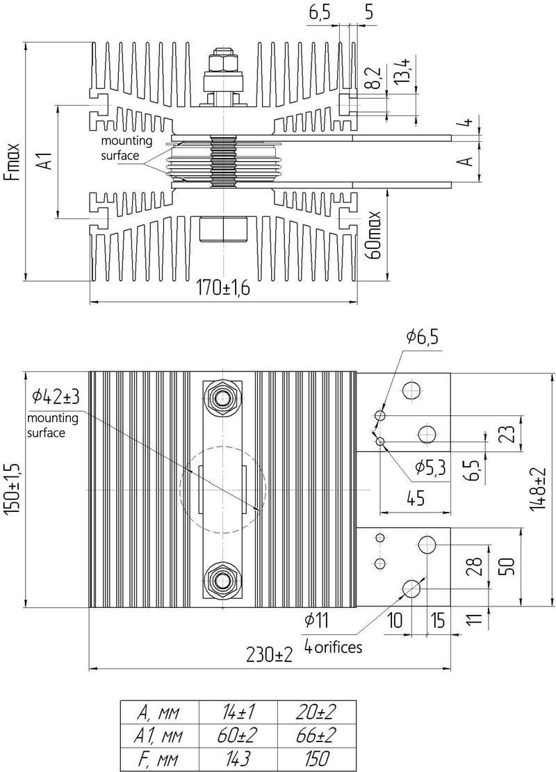 Применяется для одностороннего и двухстороннего охлаждения таблеточных диодов и тиристоров
